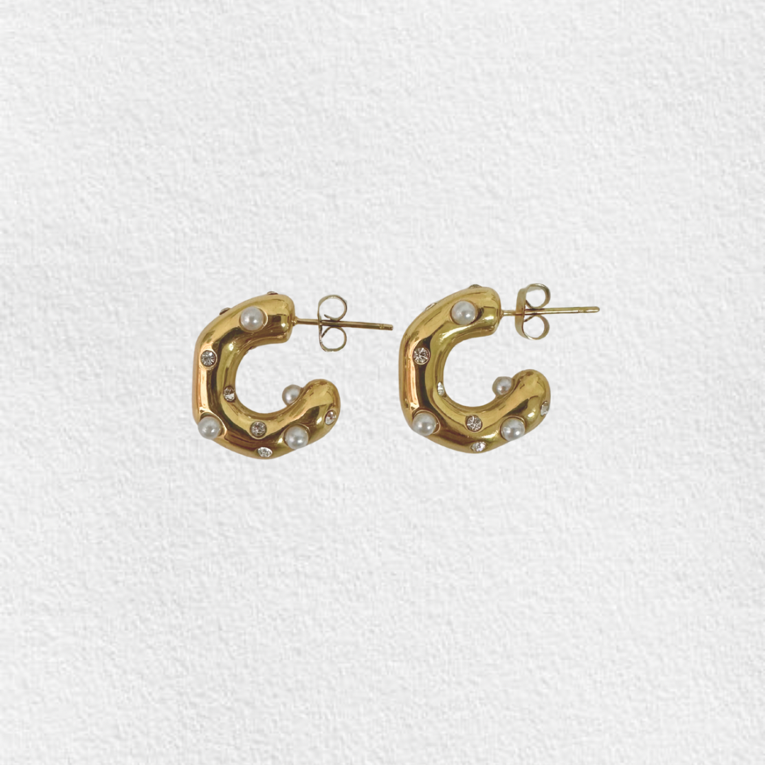 Argolas em aço inoxidável com pérolas e zircónias.