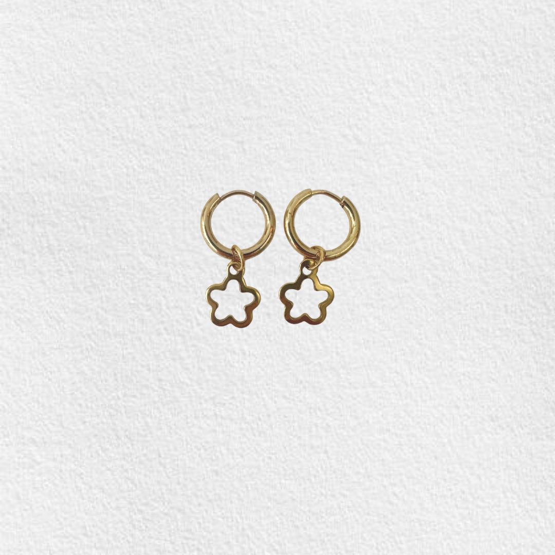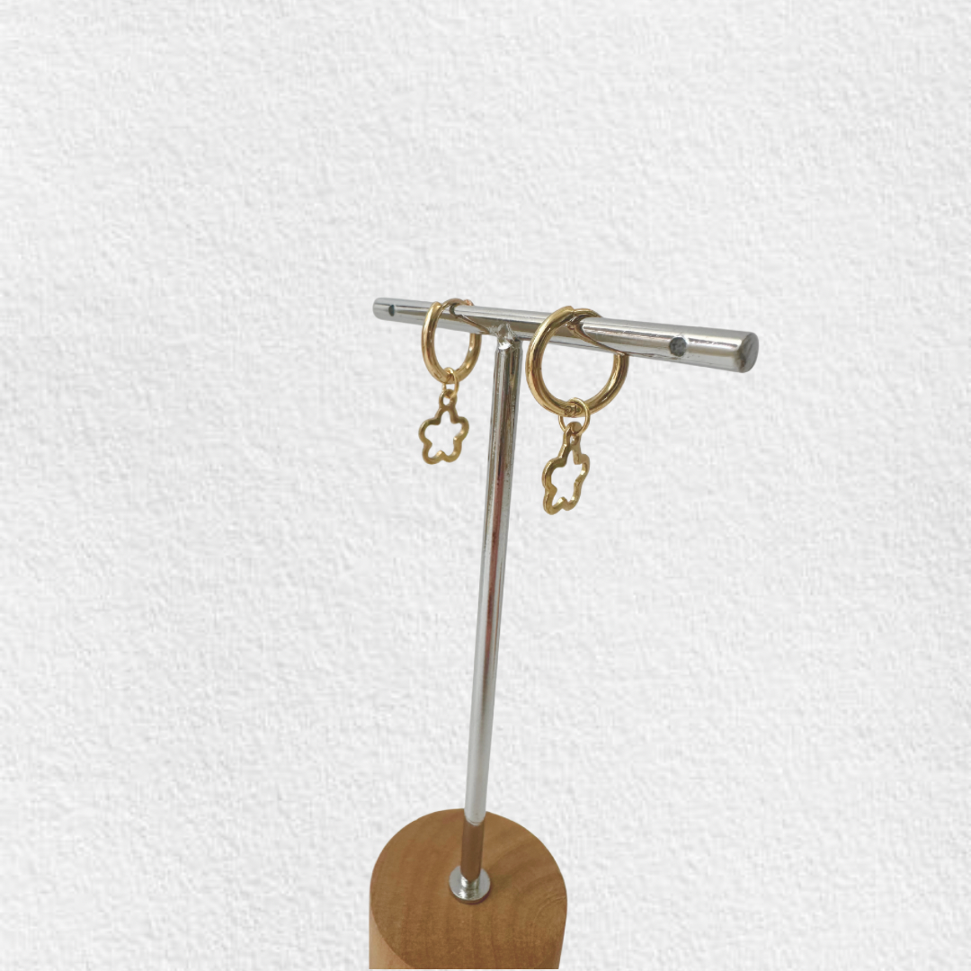 Argolas em aço inoxidável com pendente flor.