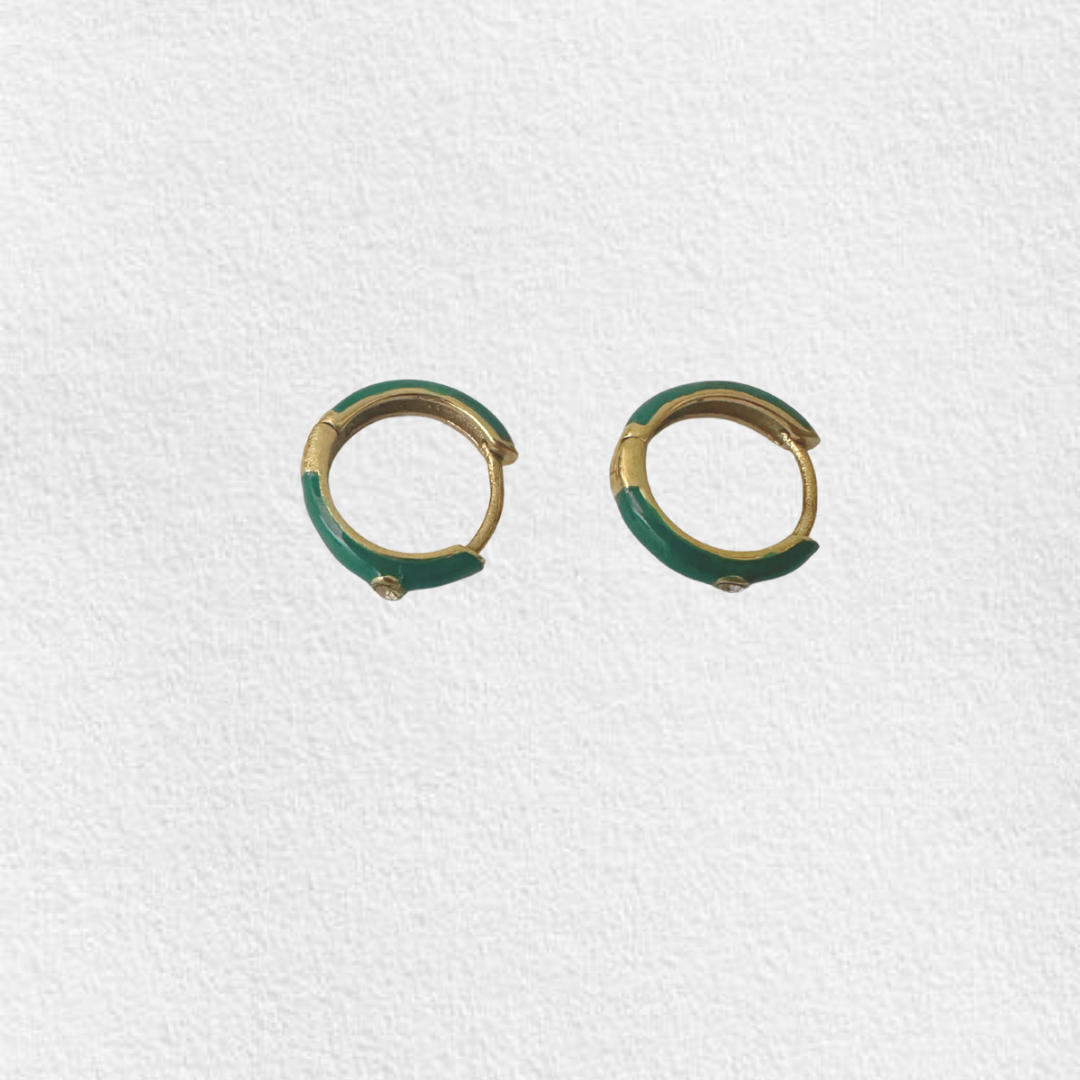 Argolas em aço inoxidável verdes com zircónia.