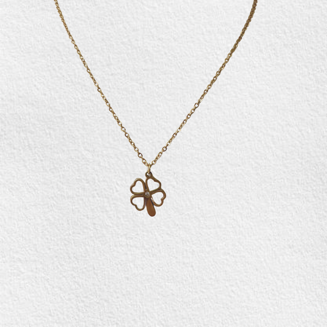 Colar em aço inoxidável com pendente trevo em madrepérola.