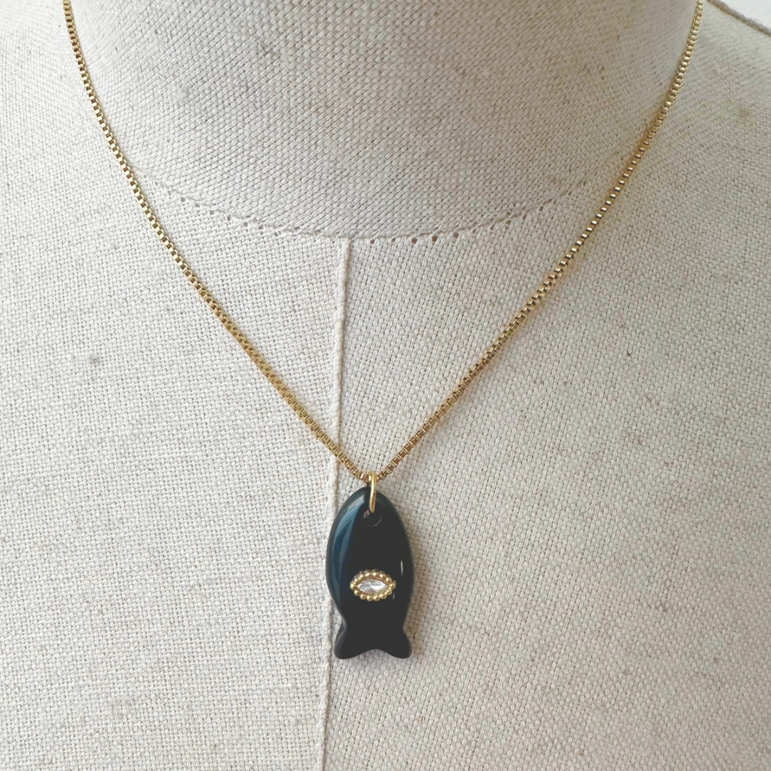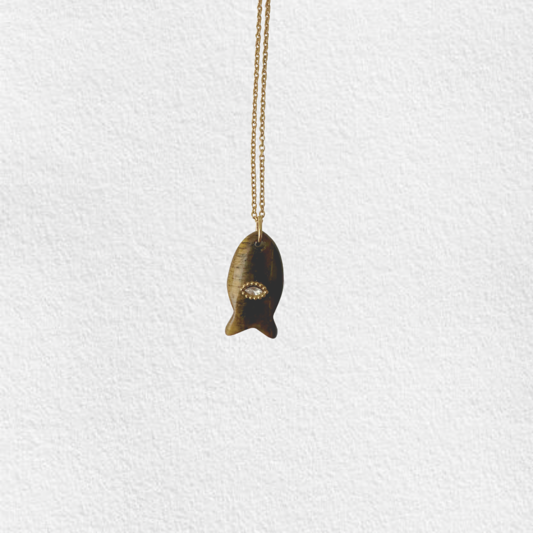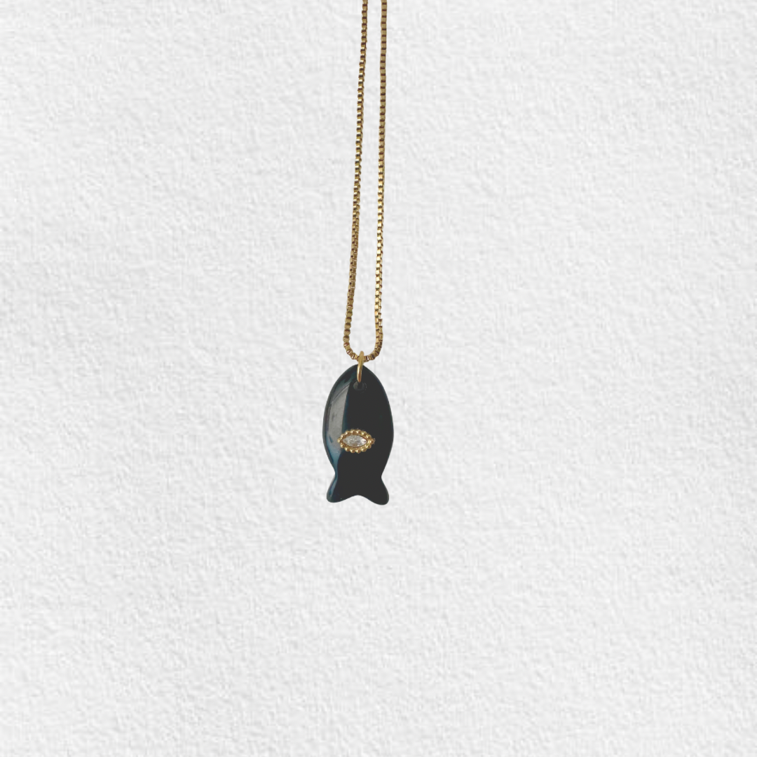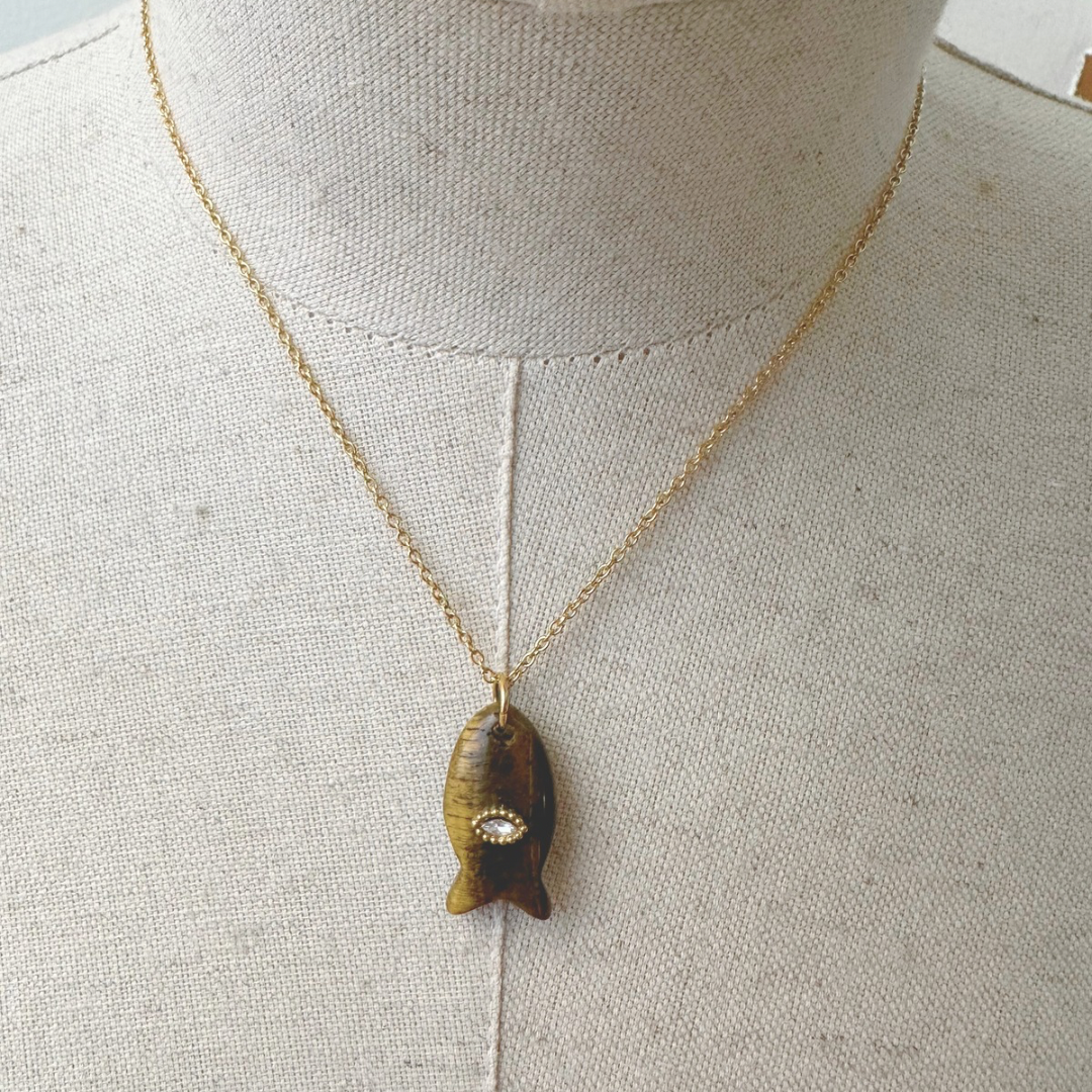 Colar em aço inoxidável com pendente peixe com olho.