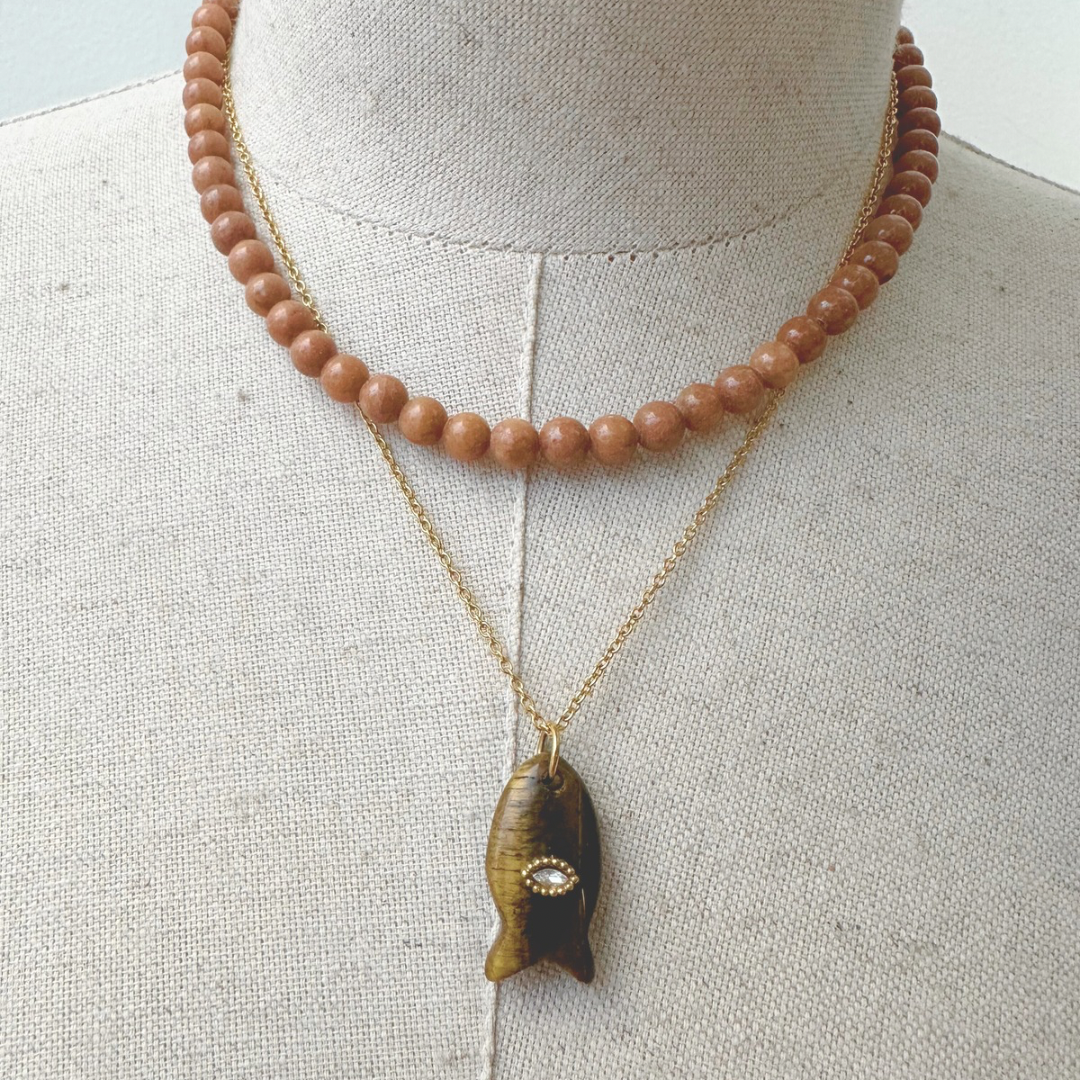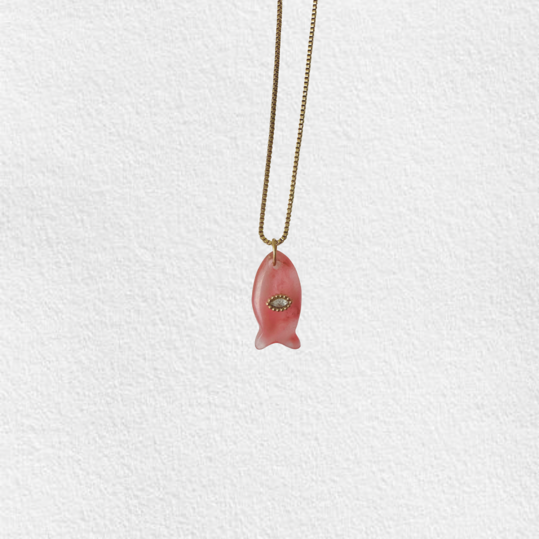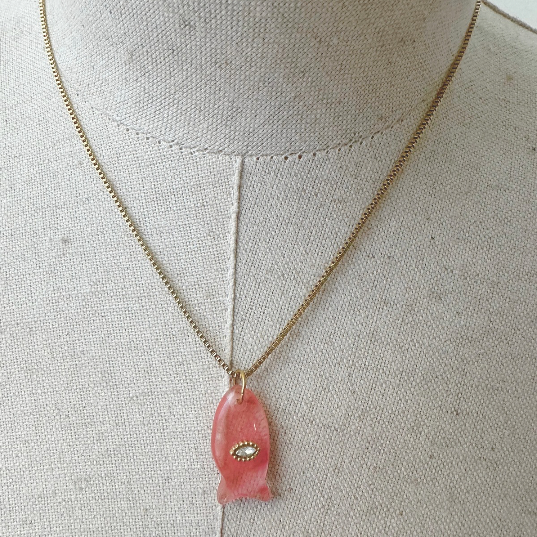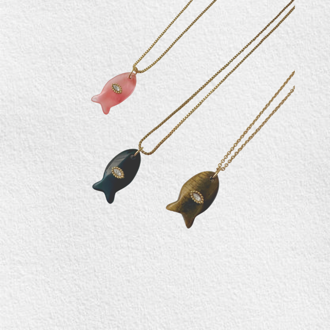 Colar em aço inoxidável com pendente peixe com olho.